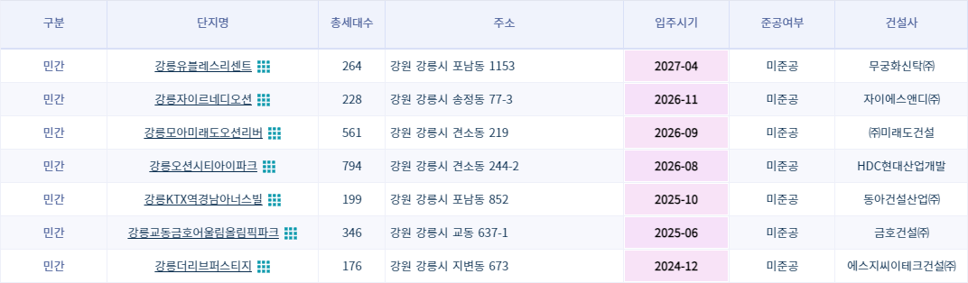 그래도 희망적인 소식은 강릉시 미분양 물량은 미준공 아파트로 입주시기 까지는 시간이 아직 있을 것을 보입니다.