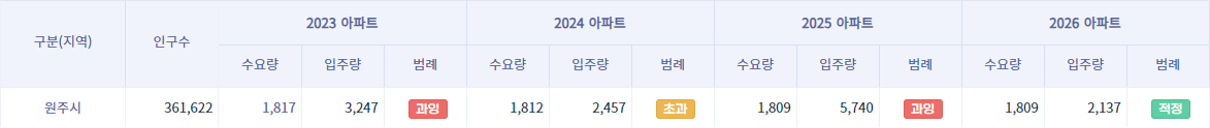 2024년과 2025년에도 주요 아파트 단지들의 입주가 예정되어 있어, 원주시의 주택 시장에는 단기적으로 상당한 공급이 이루어질 예정입니다.
