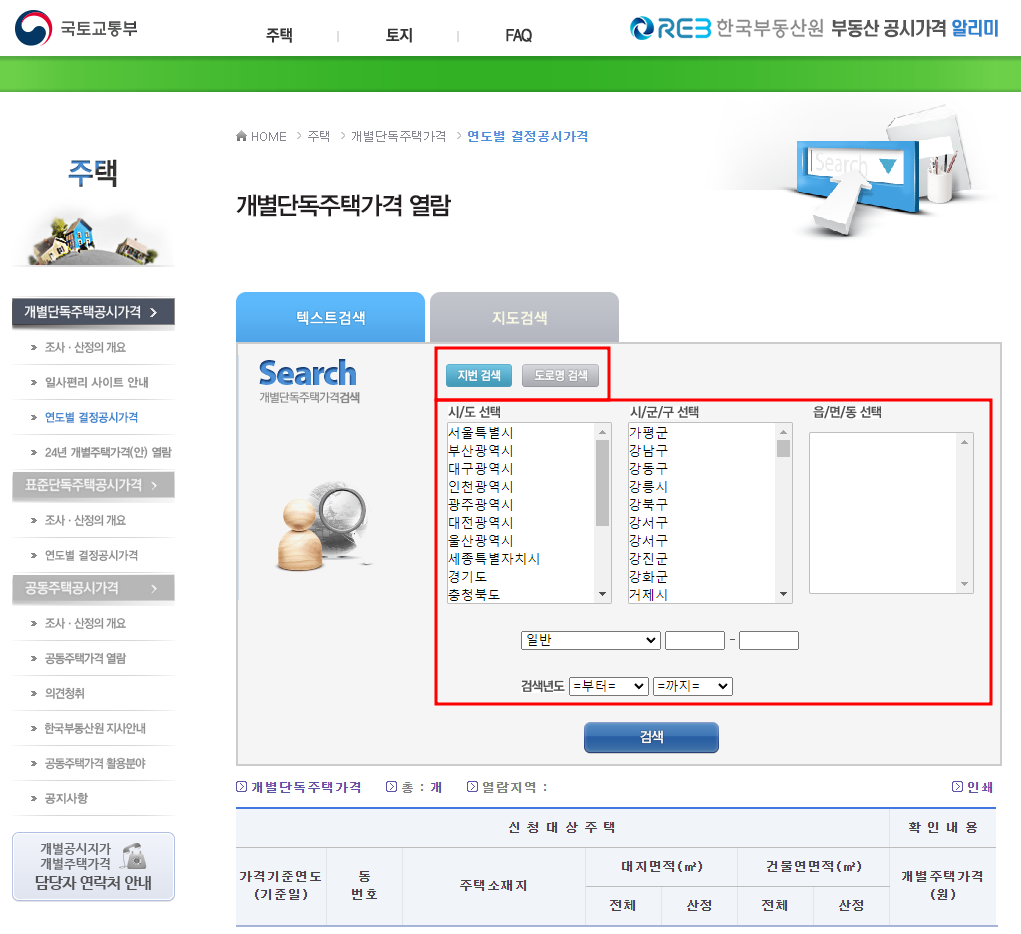 2) 단독주택 공시가격 조회하기