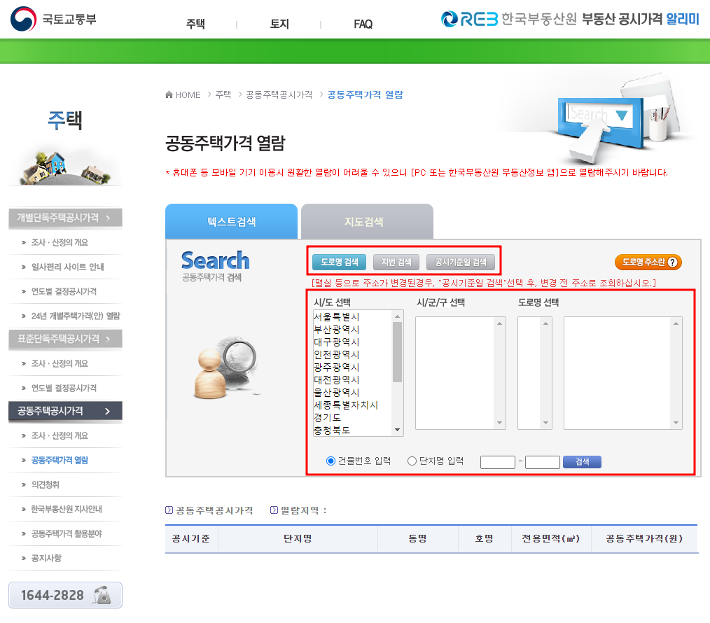 1) 공동주택 공시가격 조회하기(아파트, 오피스텔, 빌라 등)