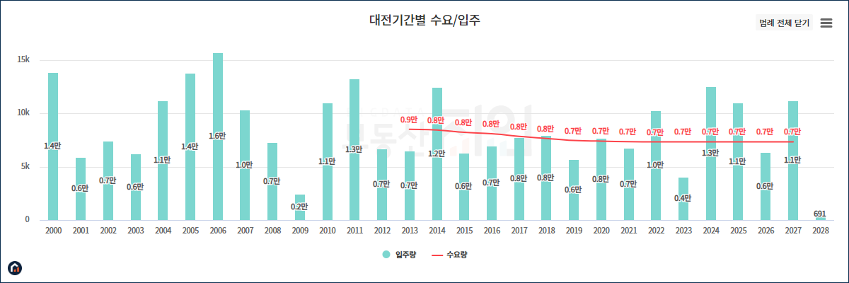 대전광역시 입주 물량은 2026년을 제외하고 충분한 공급량을 보이고 있습니다.