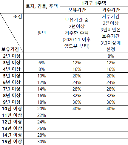 하지만, 보유기간 및 거주기간에 대한 장기보유특별공제에 대한 이해를 한 뒤, 계산을 해보시길 적극 권장합니다.