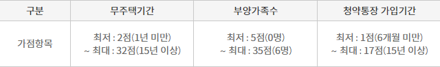 지역우선 공급기준에 따르며 지역내 경쟁시 아래 가점제 적용