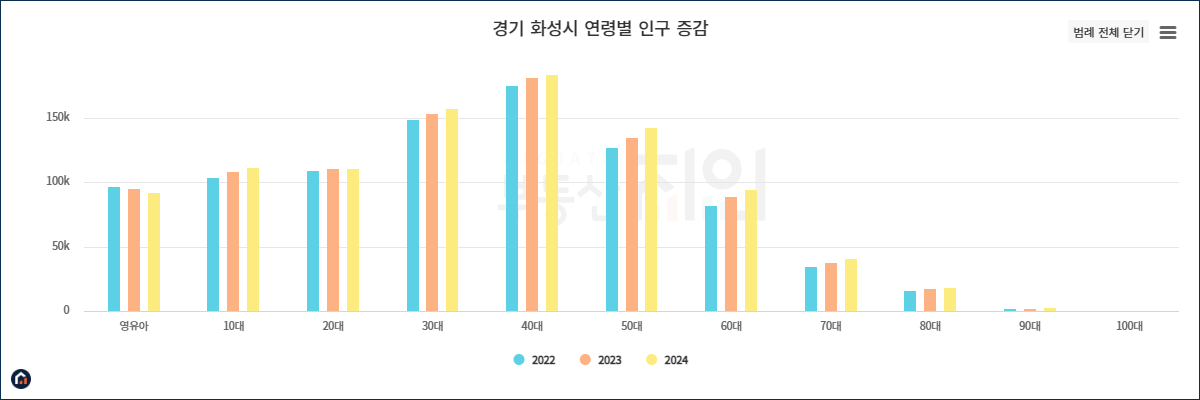 경기도 화성시 연령별 인구수 그래프