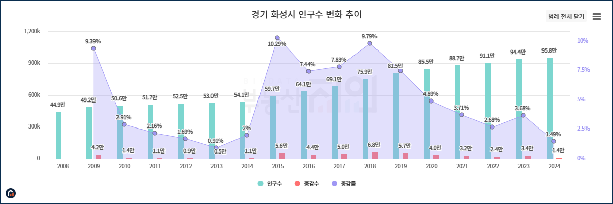 화성시의 인구는 부동산 시장 변화에 의해 많은 변화가 있었습니다.
