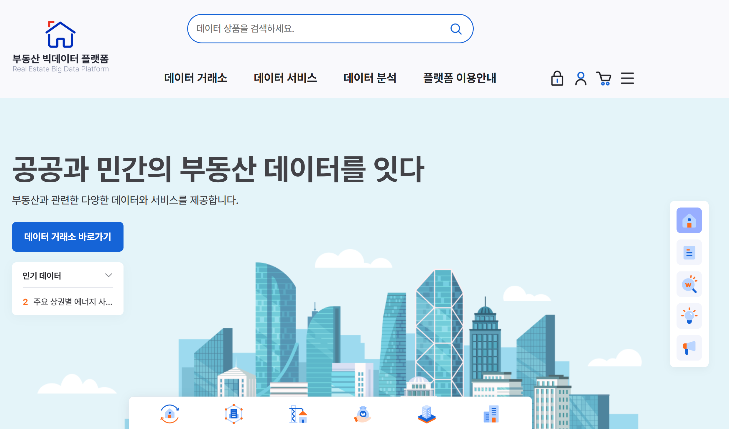 부동산과 관련한 다양한 데이터와 서비스를 제공 - 정부 주도의 공식 빅데이터 서비스